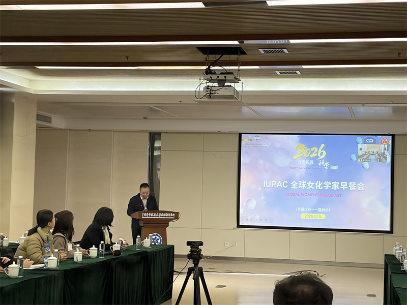 2月10日上午,由国际纯粹与应用化学联合会(IUPAC)发起、中国化学会女化学工作者委员会组织的2026年IUPAC全球女化学家早餐会福州站活动在中国科学院福建物质结构研究所举行。本次活动以“众声和鸣,科学同响”为主题,以早餐交流的轻松形式搭建沟通平台,旨在促进全球女性化学工作者沟通互鉴,共同推动科学领域的公平性与多元化发展。福州作为本年度新增举办城市,首次设立分会场,与北京、上海、香港等全国13个城市同步视频连线,共同参与这一国际化学界盛会。